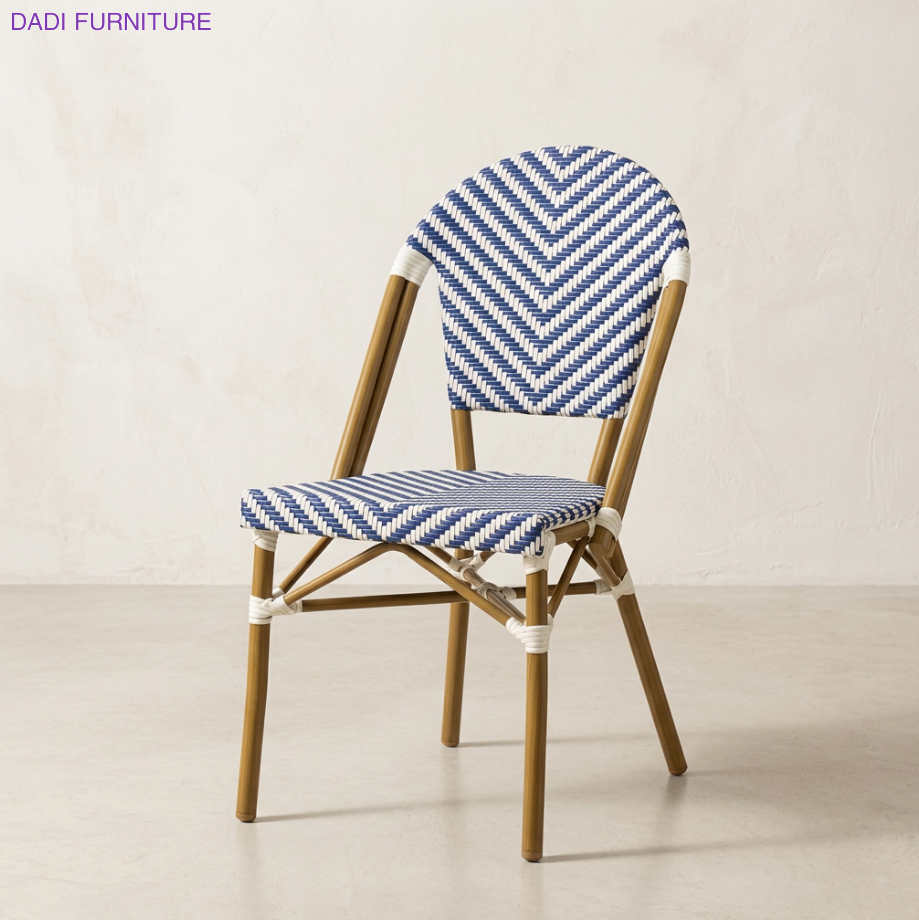Gold Aluminum Outdoor Armchair French Bistro Design All Weather Rope Woven Seating for Hospitality