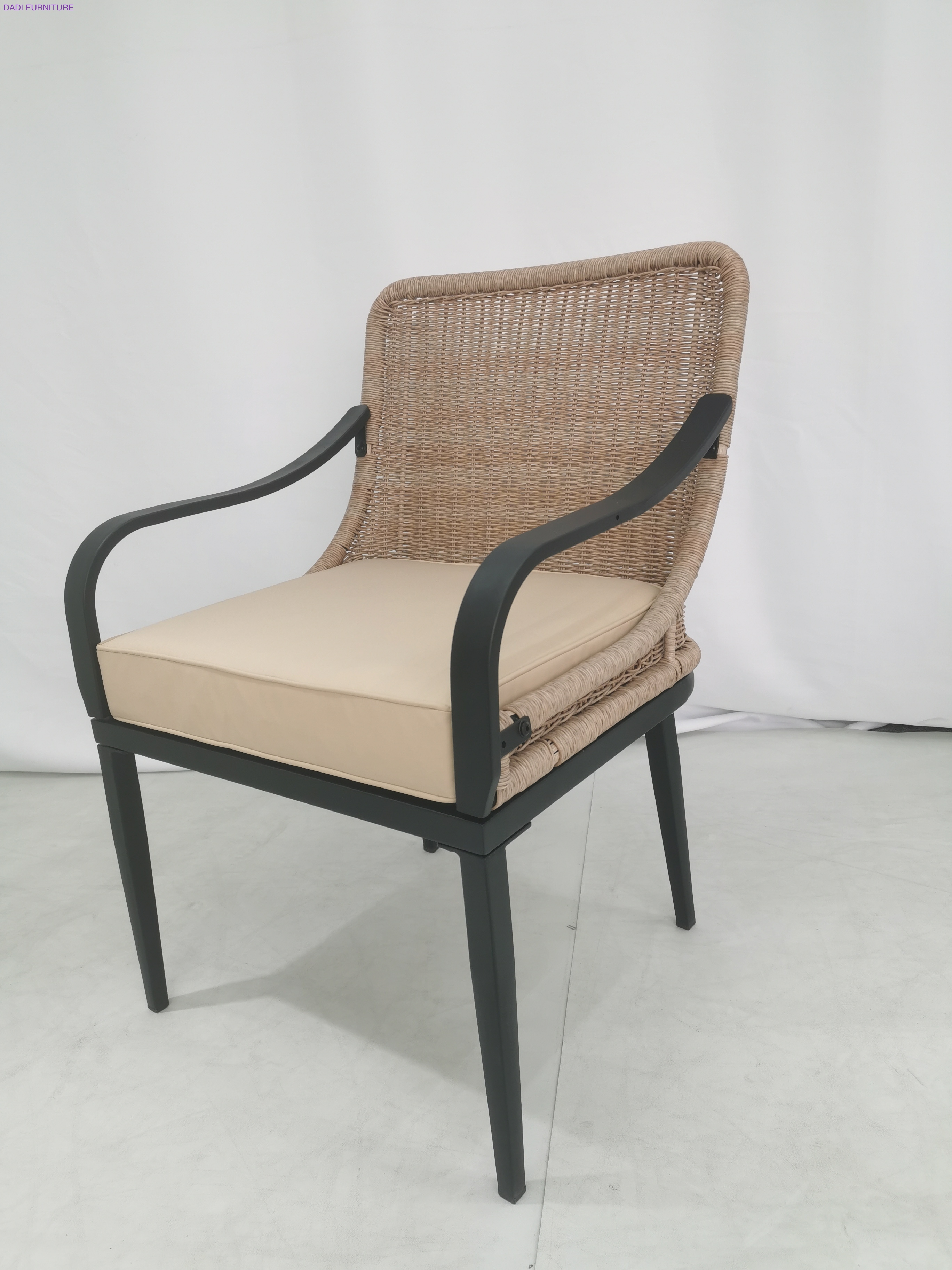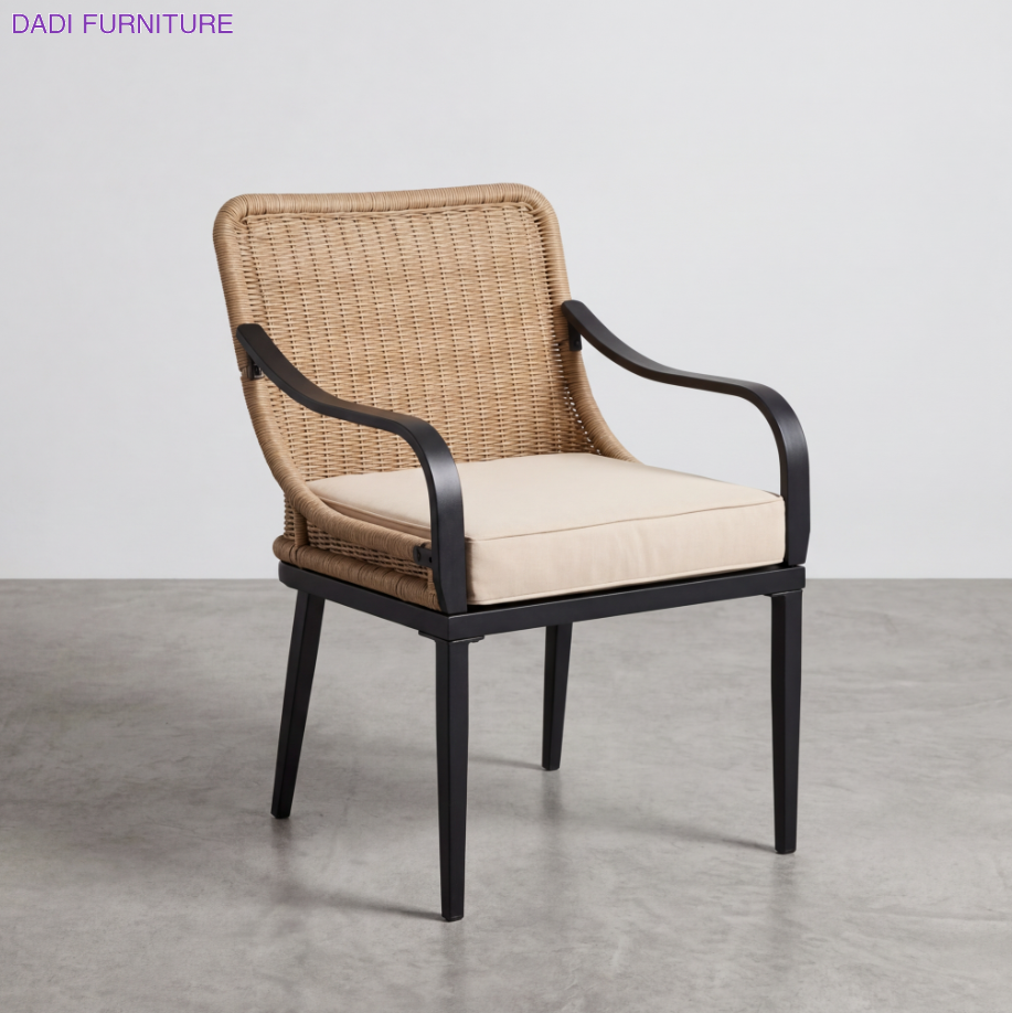 Natural PE Rattan Dining Chair Black Aluminum Frame Outdoor Patio Armchair with Cushion