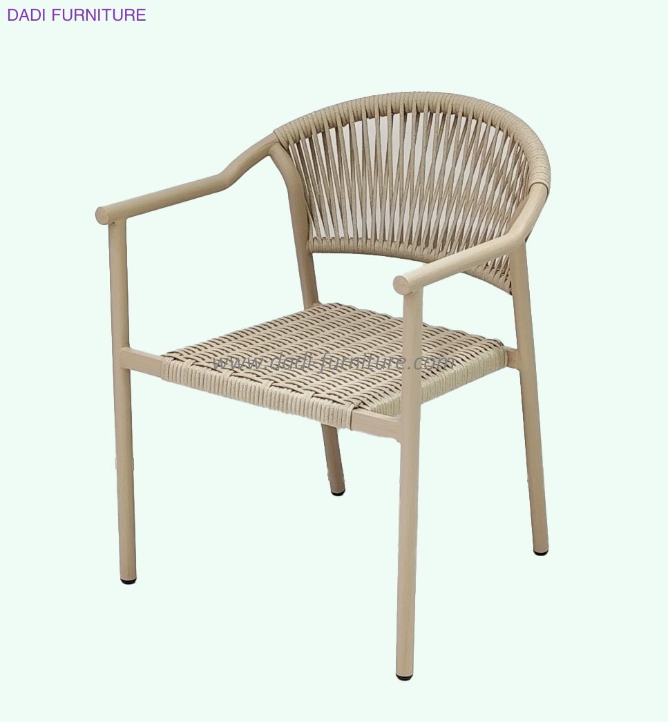 Guangzhou Factory Wholesale Aluminium Rustless Frame Wicker Rope Curved Patio Dining Arm Chair