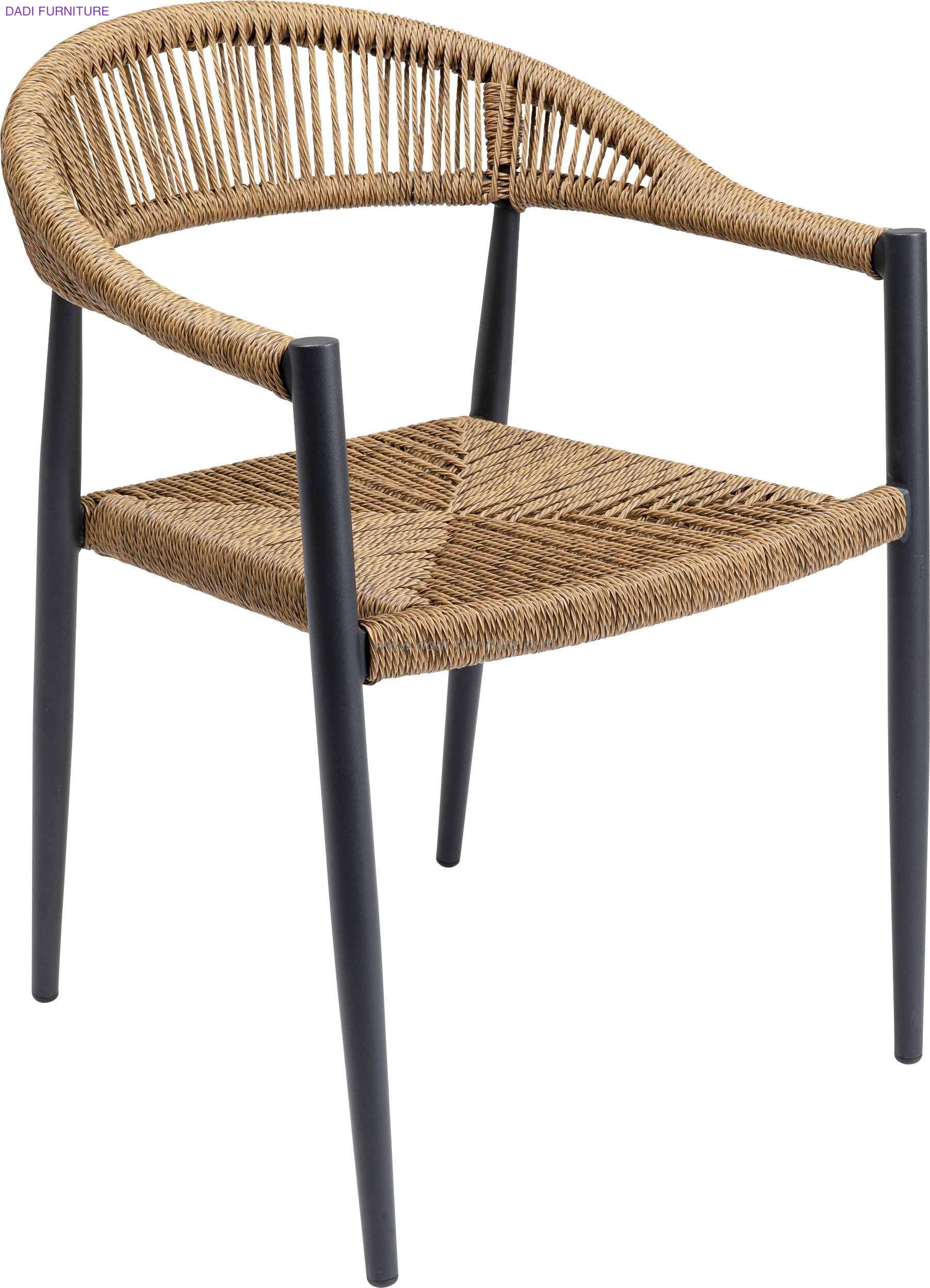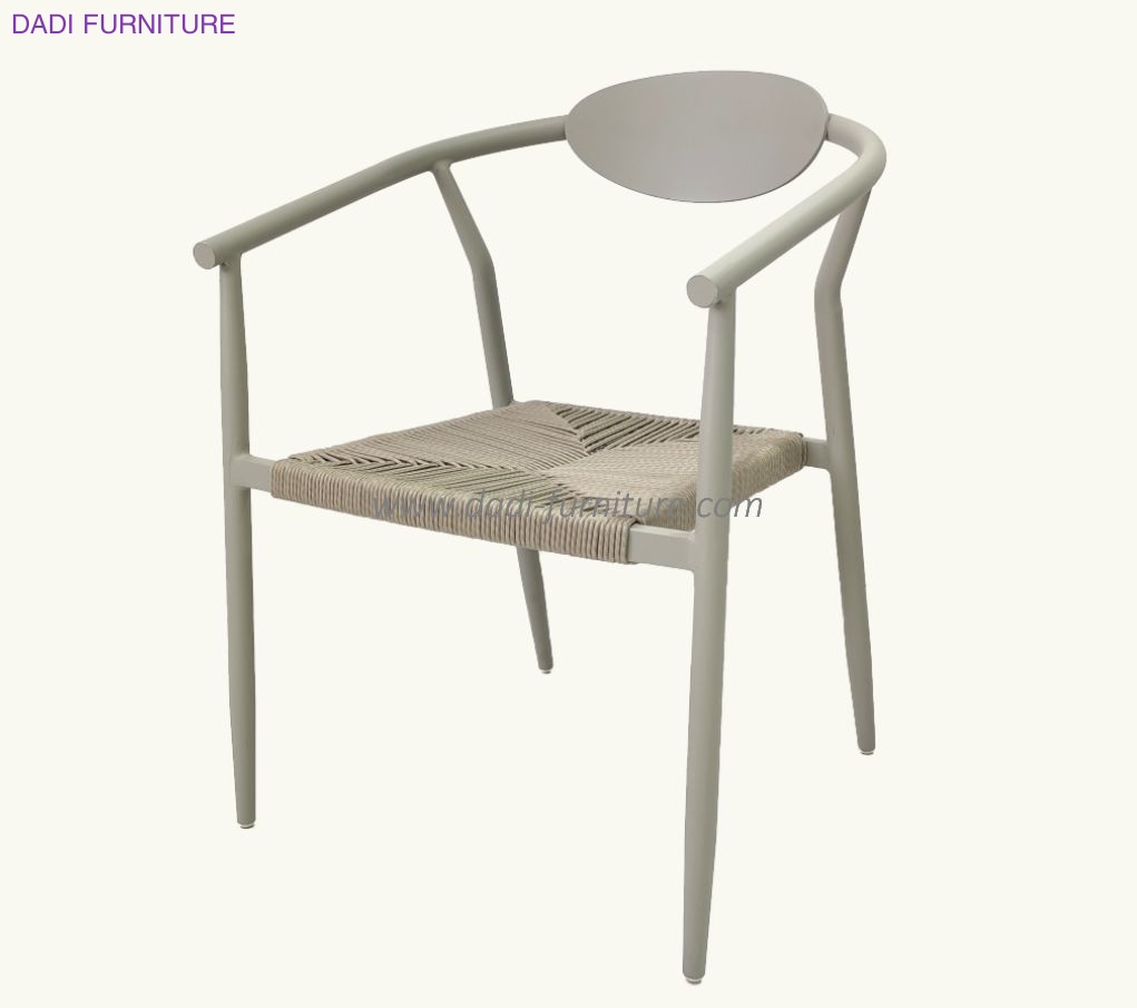 Guangzhou Factory Wholesale Aluminium Rustless Frame Wicker Rope Curved Patio Dining Arm Chair