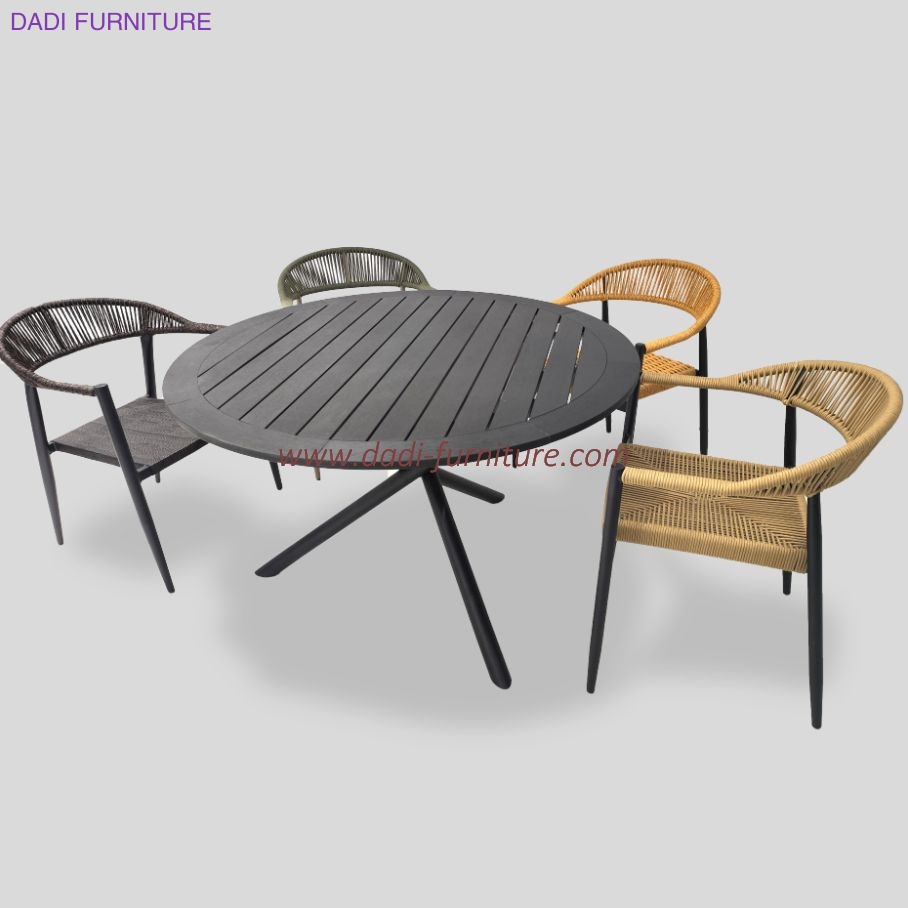 Popular Outdoor Commercial Metal Frame WPC Plastic Wood Table and Chair Outdoor Furniture Dining Set