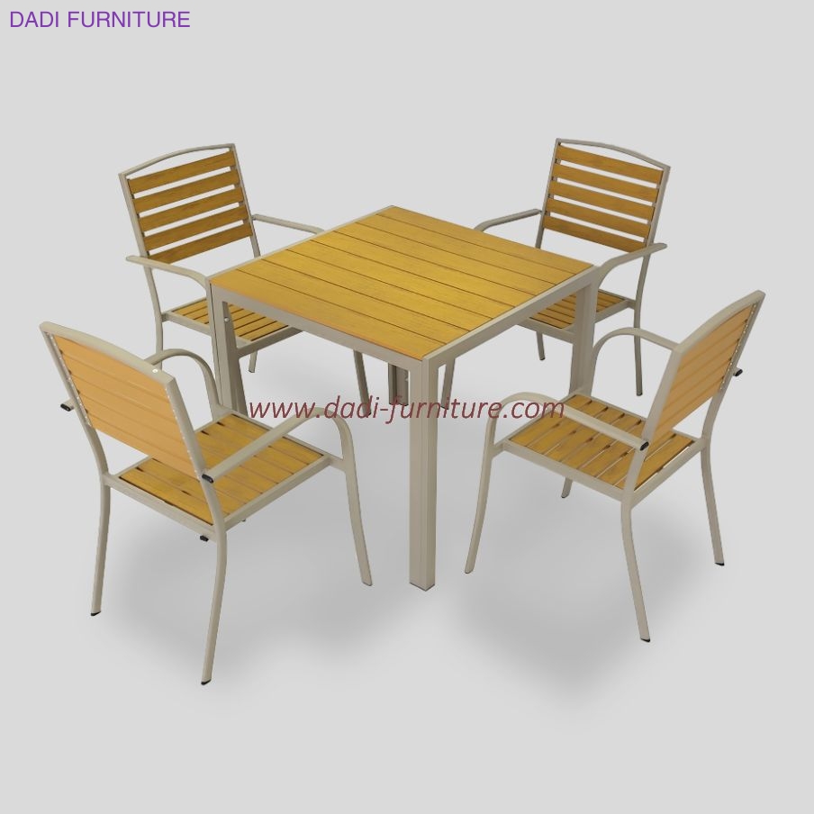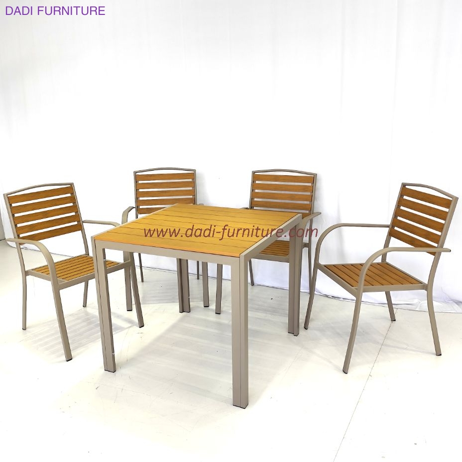 Luxury Waterproof Dining Furniture Durable Wooden Metal Cafe Chairs Outdoor Tables Patio Garden Sets