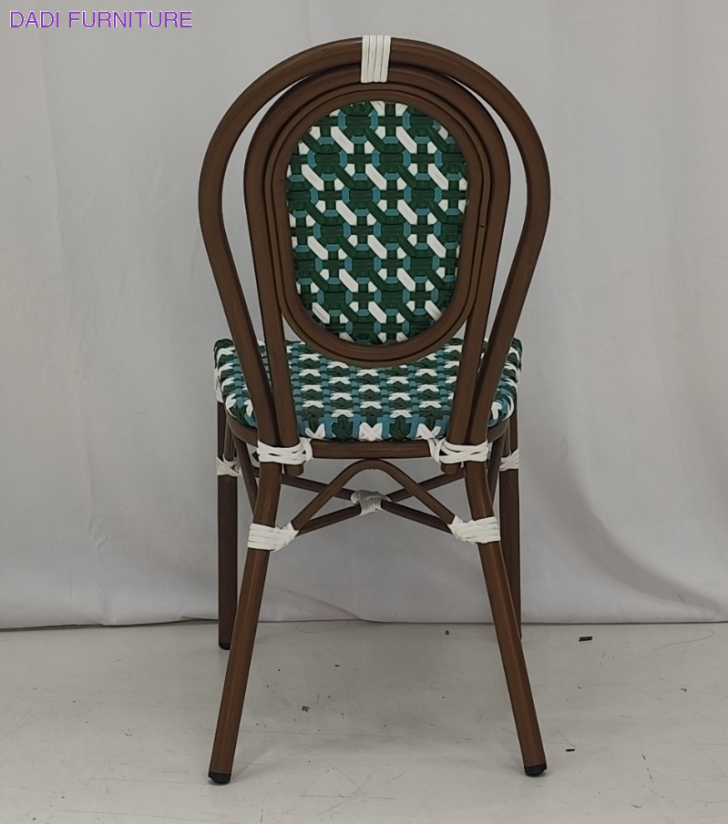 Gold Aluminum Outdoor Armchair French Bistro Design All Weather Rope Woven Seating for Hospitality