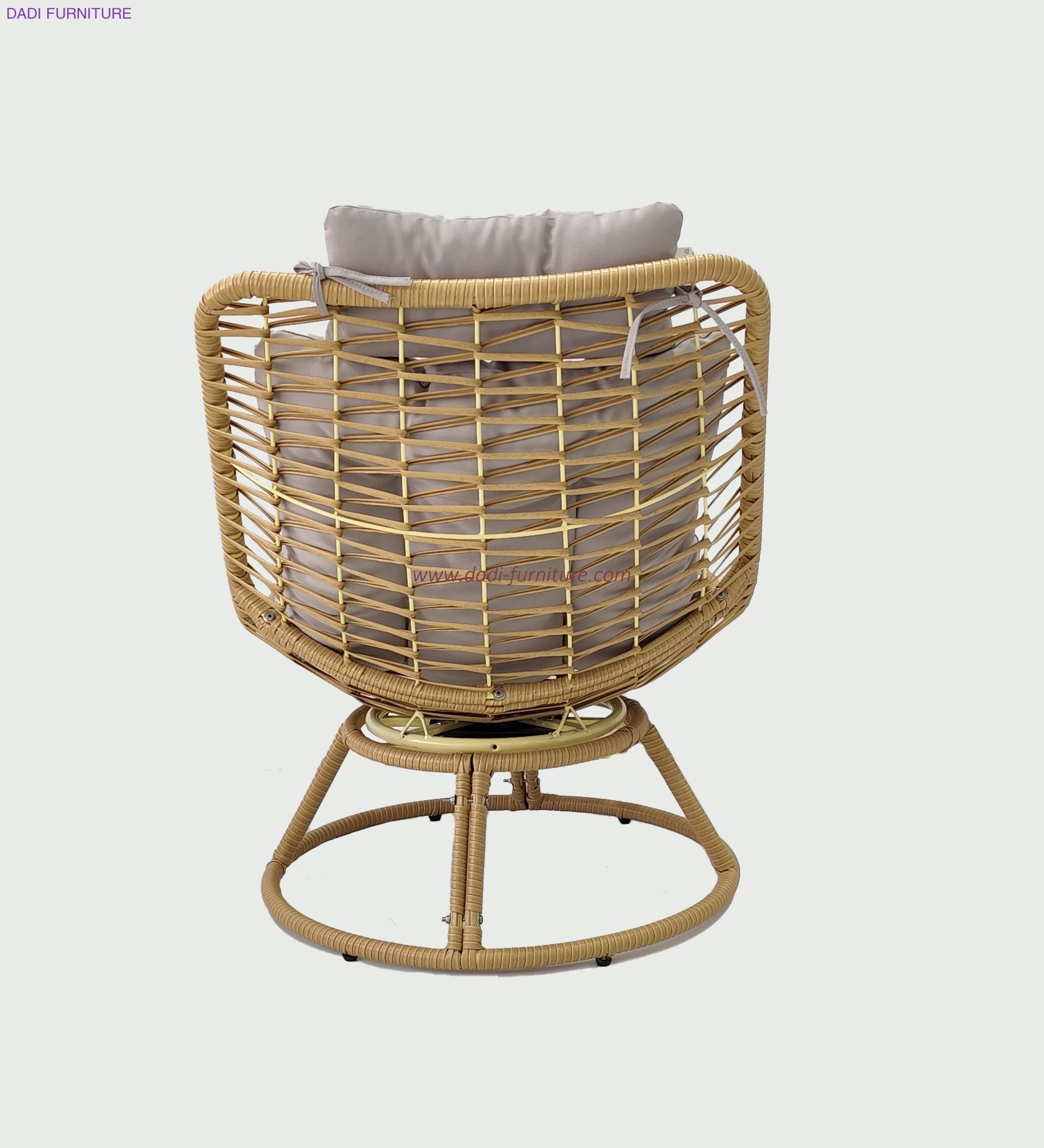 Comfortable E-commerce Packing Cheap Rattan Rotating Chair with Waterproof Cushion Rustless Outdoor Swiveling Chair